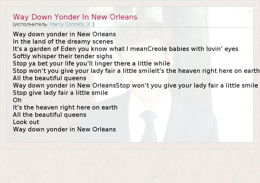 А как ты думаешь, о чем песня "Way Down Yonder In New Orleans" ?