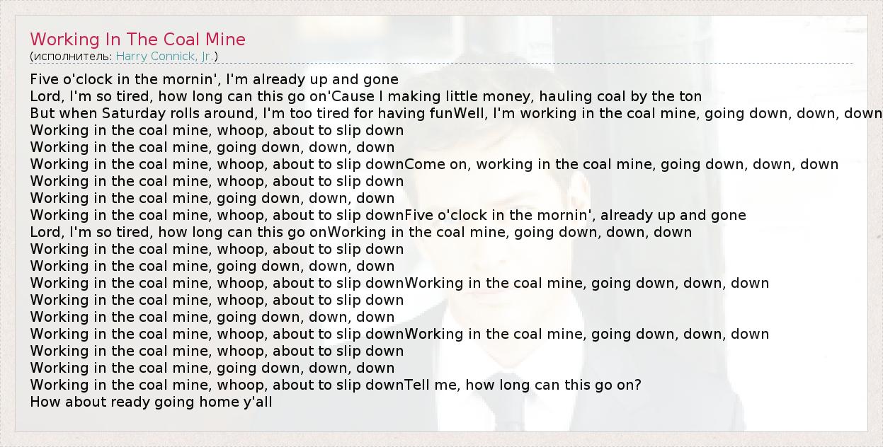 А как ты думаешь, о чем песня "Working In The Coal Mine" ?