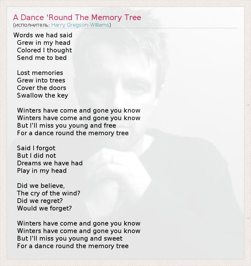 А как ты думаешь, о чем песня "A Dance 'Round The Memory Tree" ?