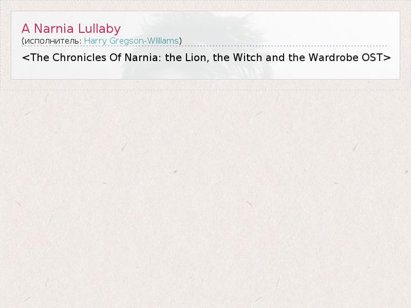 А как ты думаешь, о чем песня "A Narnia Lullaby" ?