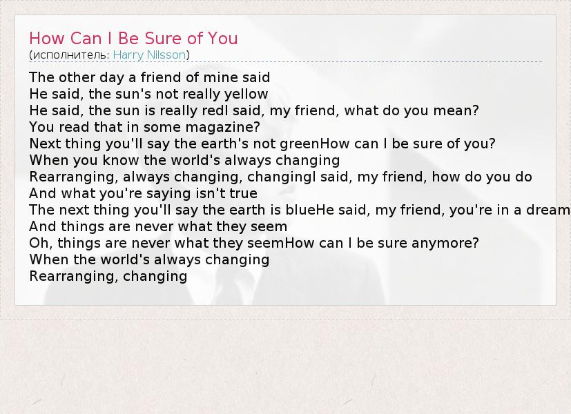 А как ты думаешь, о чем песня "How Can I Be Sure of You" ?
