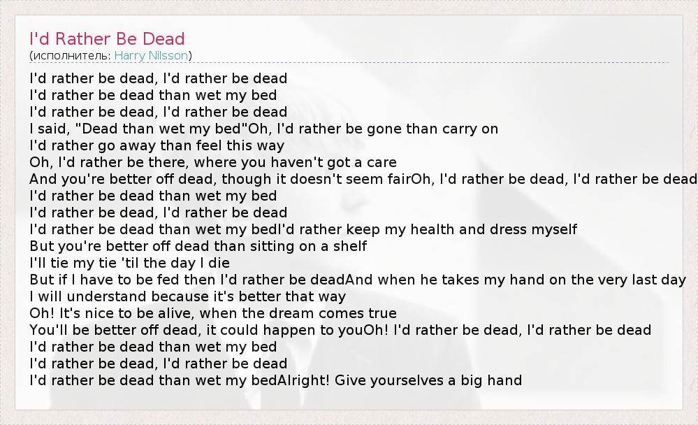 А как ты думаешь, о чем песня "I'd Rather Be Dead" ?