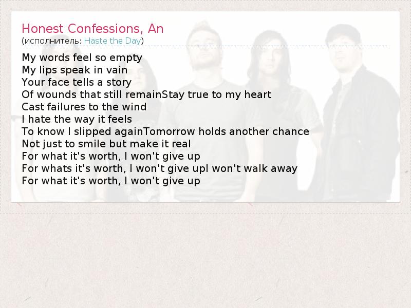 А как ты думаешь, о чем песня "Honest Confessions, An" ?