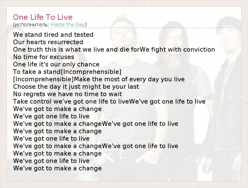 А как ты думаешь, о чем песня "One Life To Live" ?
