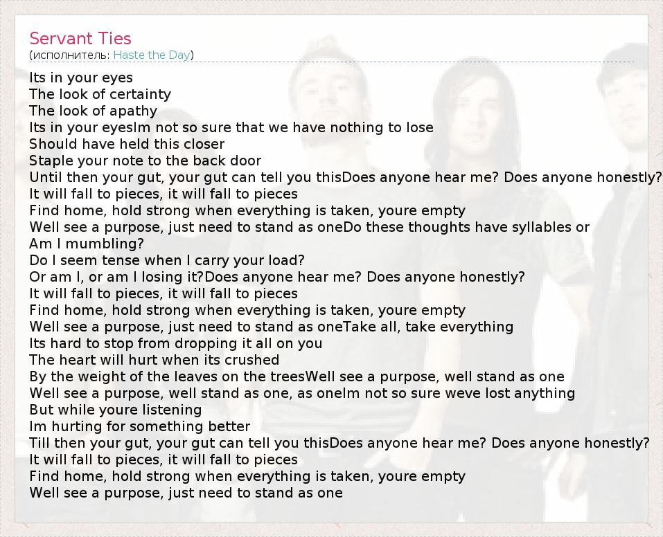 А как ты думаешь, о чем песня "Servant Ties" ?