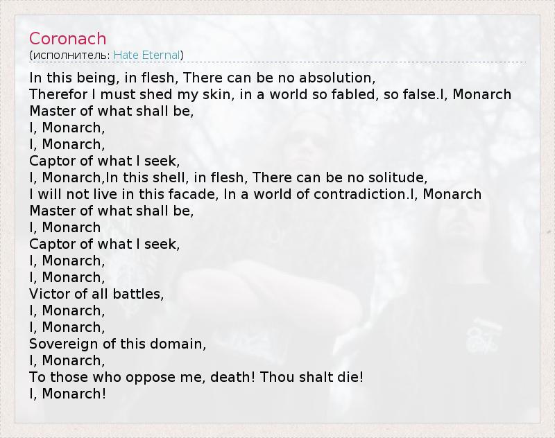 Therefor I must shed my skin, in a world so fabled, so false.I, Monarch