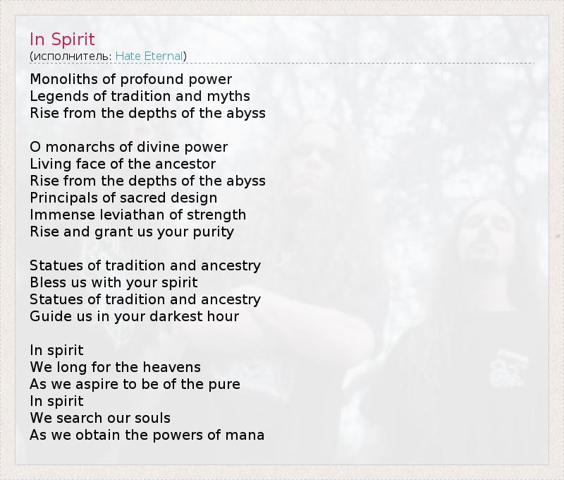 А как ты думаешь, о чем песня "In Spirit" ?