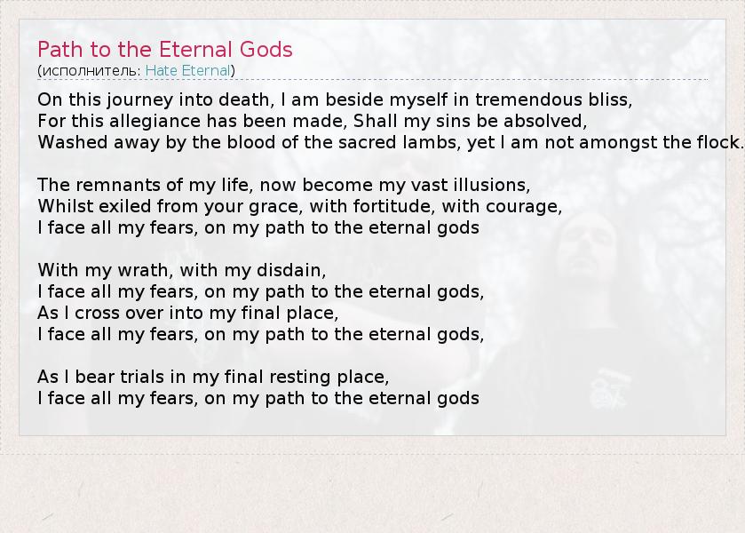 А как ты думаешь, о чем песня "Path to the Eternal Gods" ?
