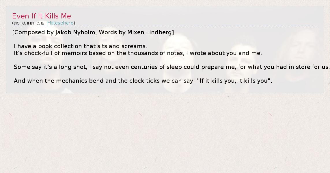 А как ты думаешь, о чем песня "Even If It Kills Me" ?