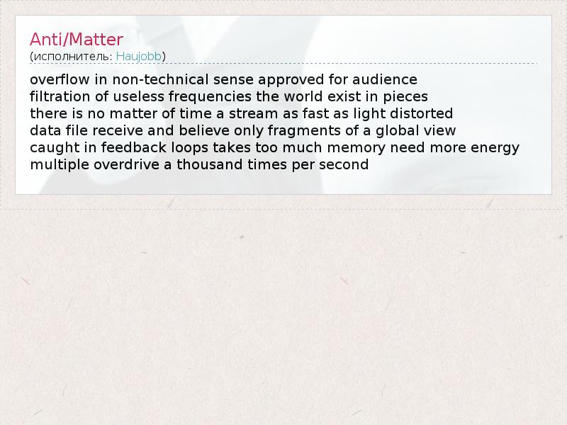 А как ты думаешь, о чем песня "Anti/Matter" ?