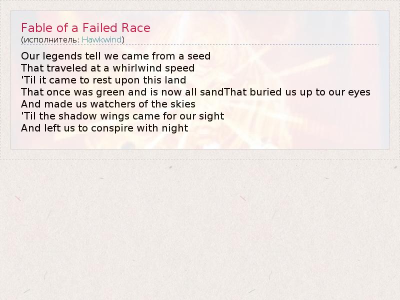 А как ты думаешь, о чем песня "Fable of a Failed Race" ?