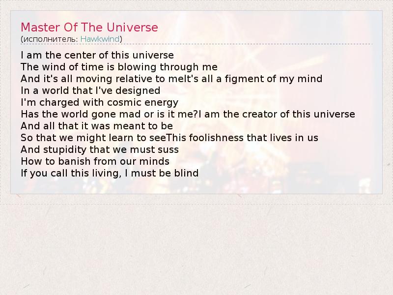 А как ты думаешь, о чем песня "Master Of The Universe" ?