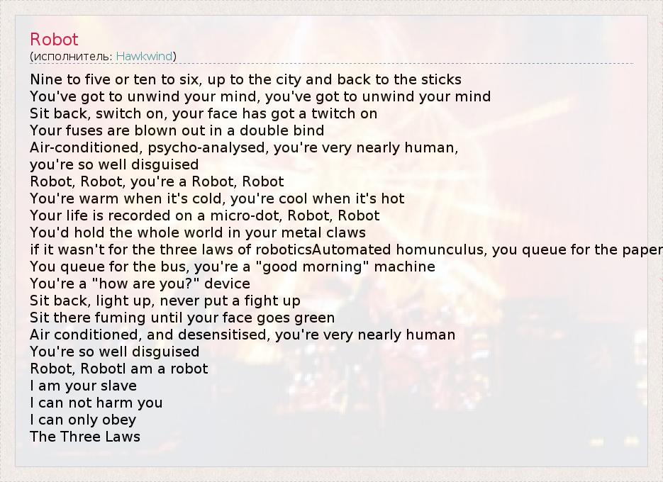 А как ты думаешь, о чем песня "Robot" ?