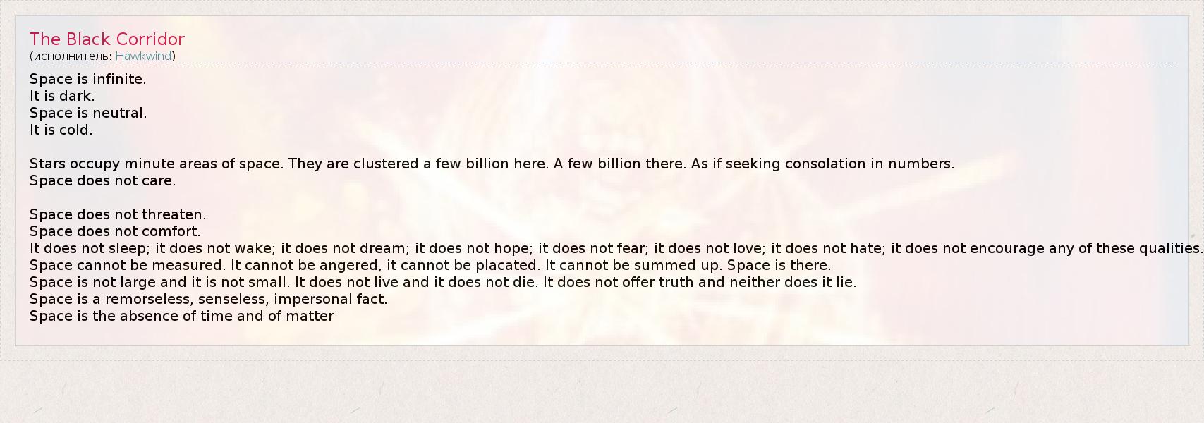 А как ты думаешь, о чем песня "The Black Corridor" ?