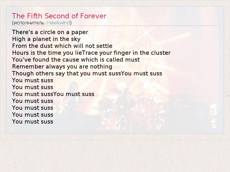 А как ты думаешь, о чем песня "The Fifth Second of Forever" ?