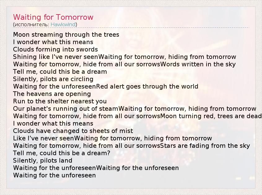 А как ты думаешь, о чем песня "Waiting for Tomorrow" ?