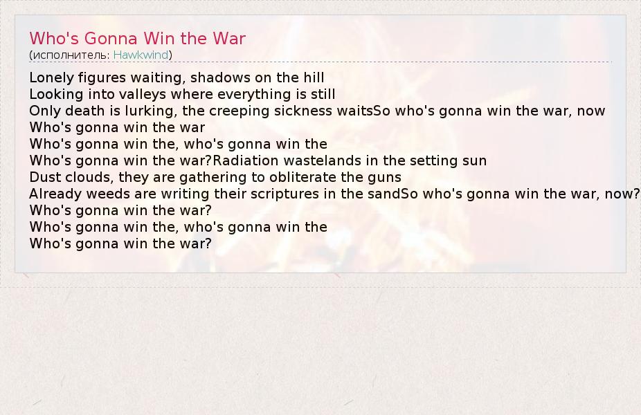 А как ты думаешь, о чем песня "Who's Gonna Win the War" ?
