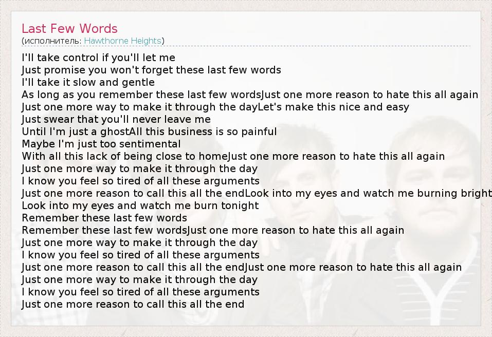 А как ты думаешь, о чем песня "Last Few Words" ?