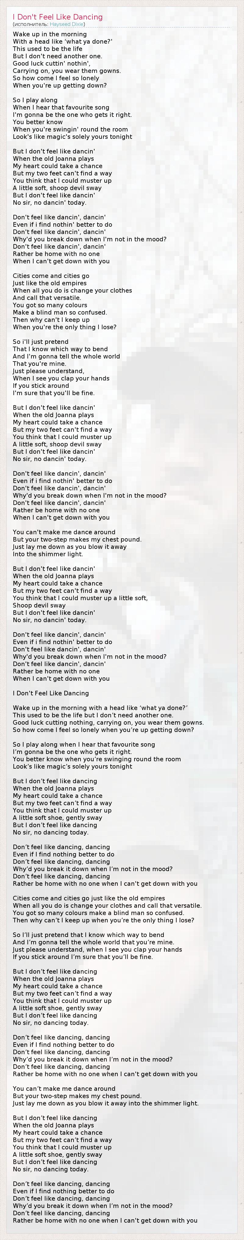 А как ты думаешь, о чем песня "I Don't Feel Like Dancing" ?
