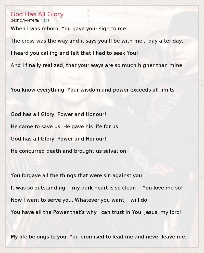 А как ты думаешь, о чем песня "God Has All Glory" ?