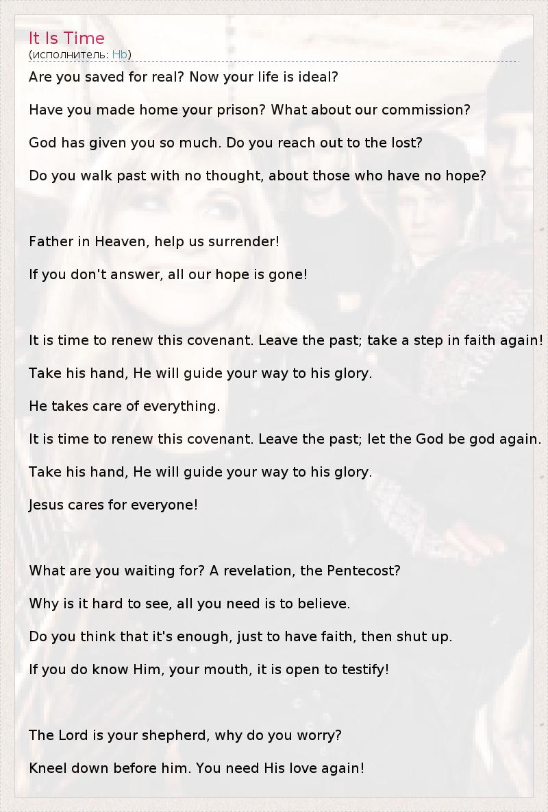 А как ты думаешь, о чем песня "It Is Time" ?