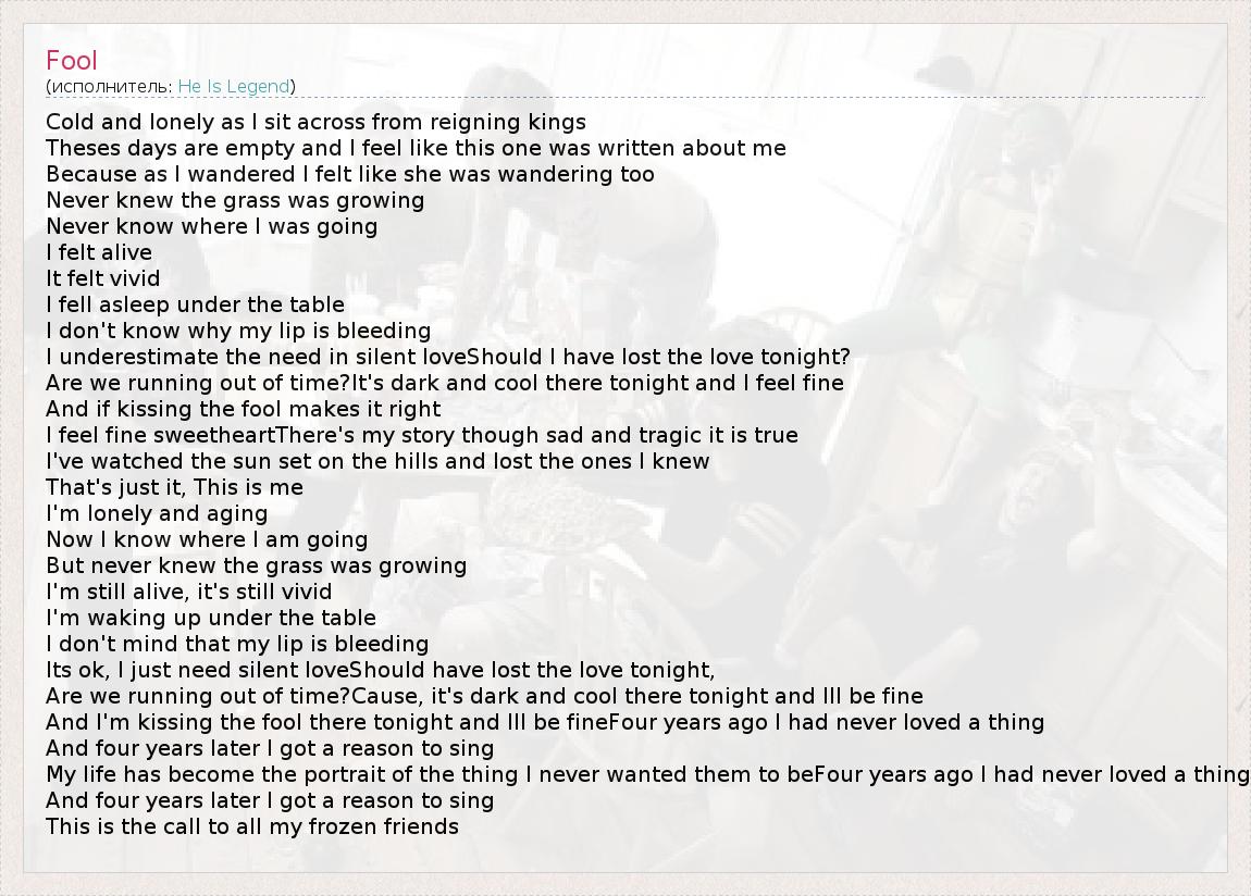 And I'm kissing the fool there tonight and Ill be fineFour years ago I had never loved a thing