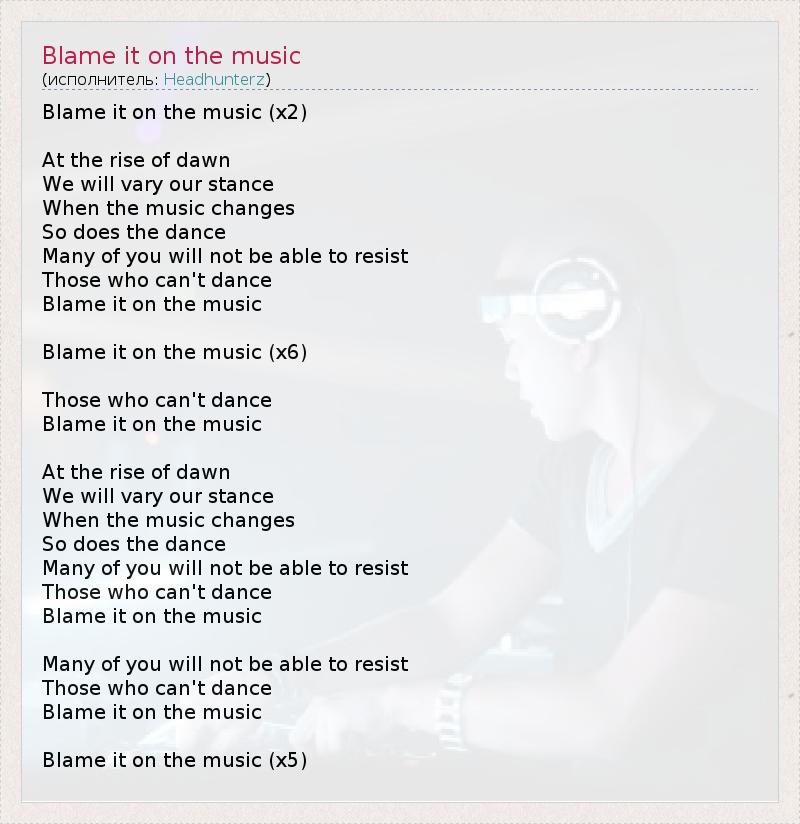 А как ты думаешь, о чем песня "Blame it on the music" ?
