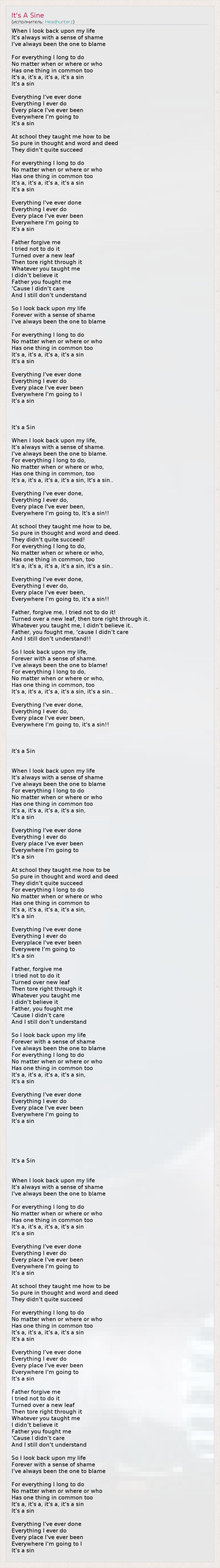 It's a, it's a, it's a, it's a sin, It's a sin..