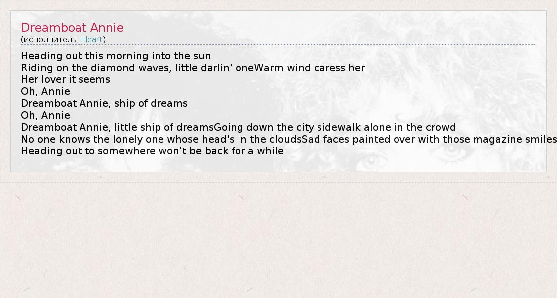 А как ты думаешь, о чем песня "Dreamboat Annie" ?