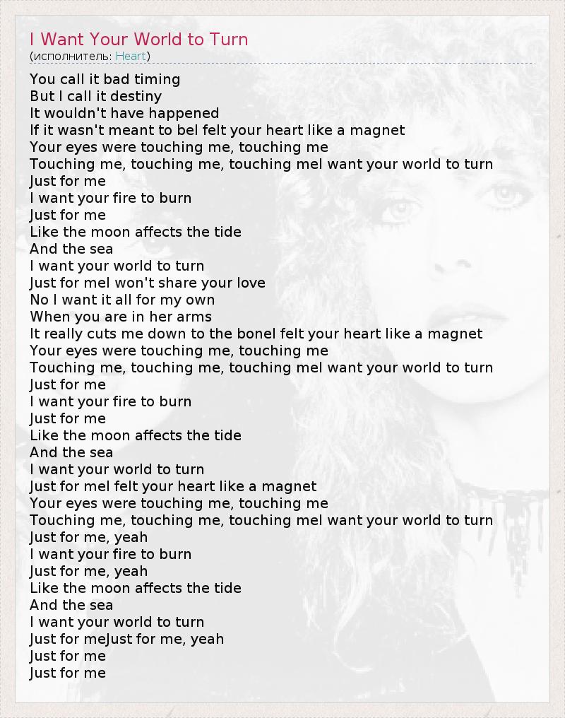 ГлавнаяИсполнителиHeartI Want Your World to Turn