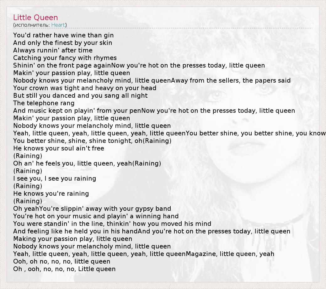 А как ты думаешь, о чем песня "Little Queen" ?