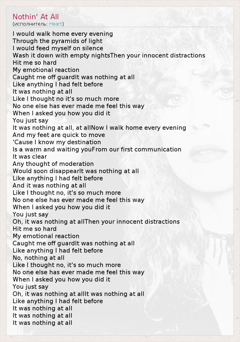 А как ты думаешь, о чем песня "Nothin' At All" ?