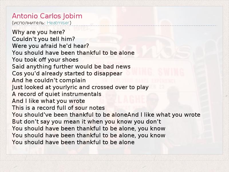 А как ты думаешь, о чем песня "Antonio Carlos Jobim" ?