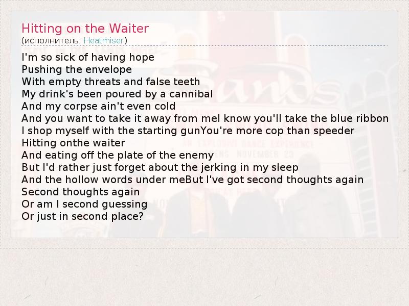 А как ты думаешь, о чем песня "Hitting on the Waiter" ?