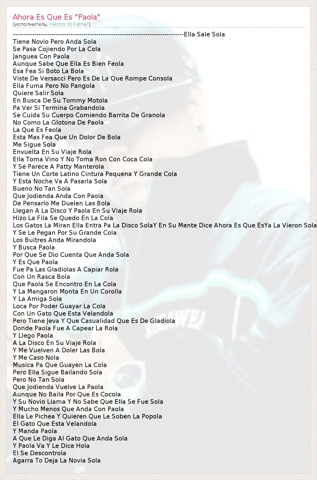 А как ты думаешь, о чем песня "Ahora Es Que Es "Paola"" ?