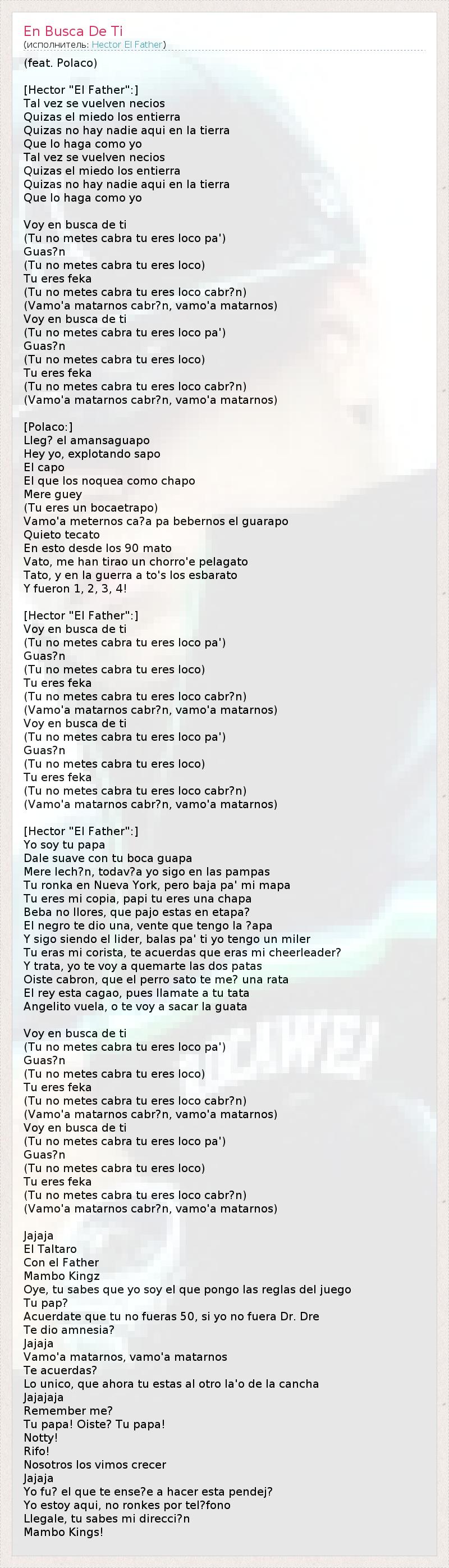 А как ты думаешь, о чем песня "En Busca De Ti" ?