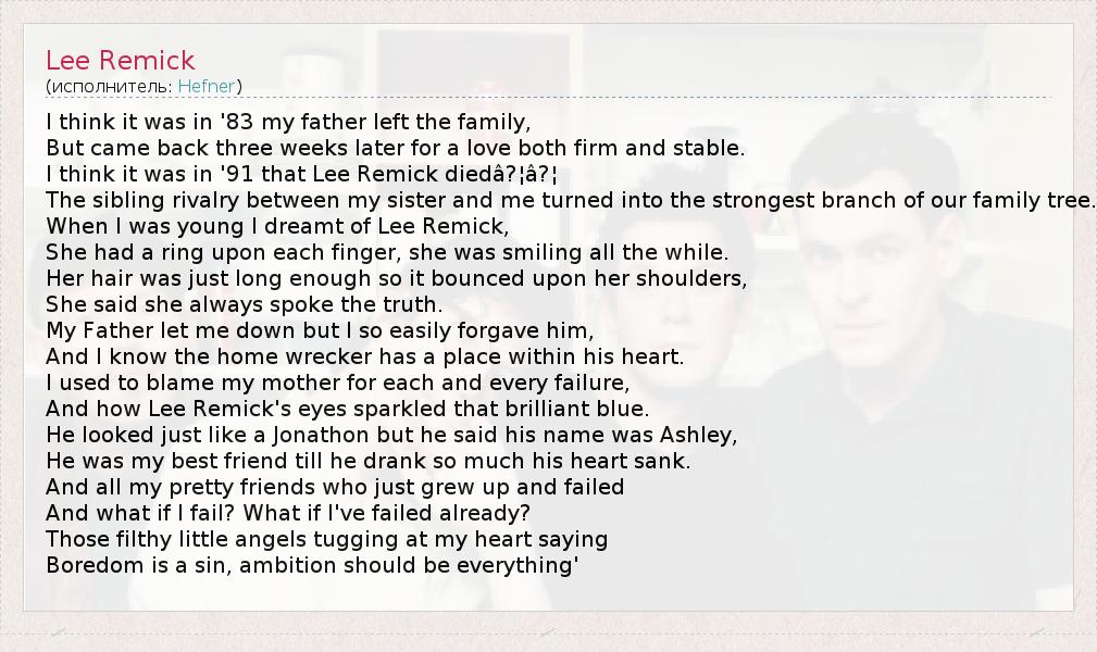 А как ты думаешь, о чем песня "Lee Remick" ?