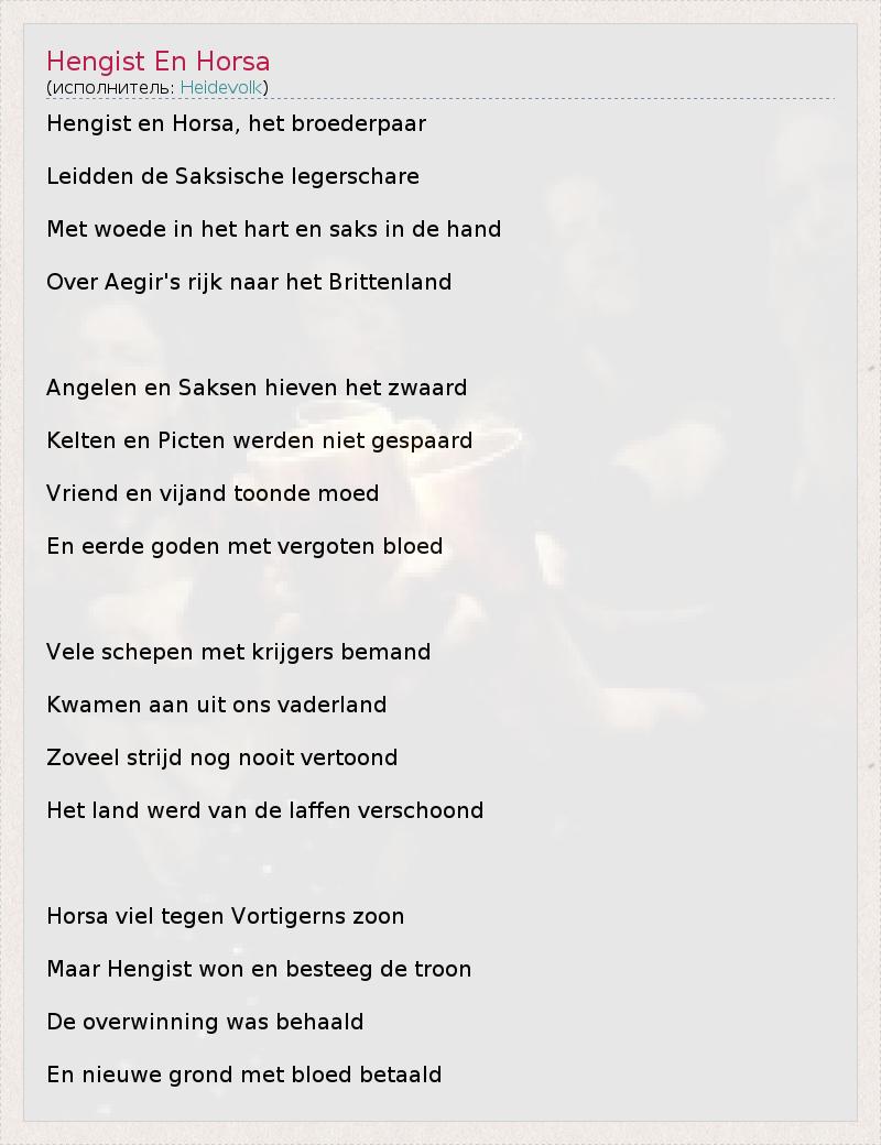 А как ты думаешь, о чем песня "Hengist En Horsa" ?