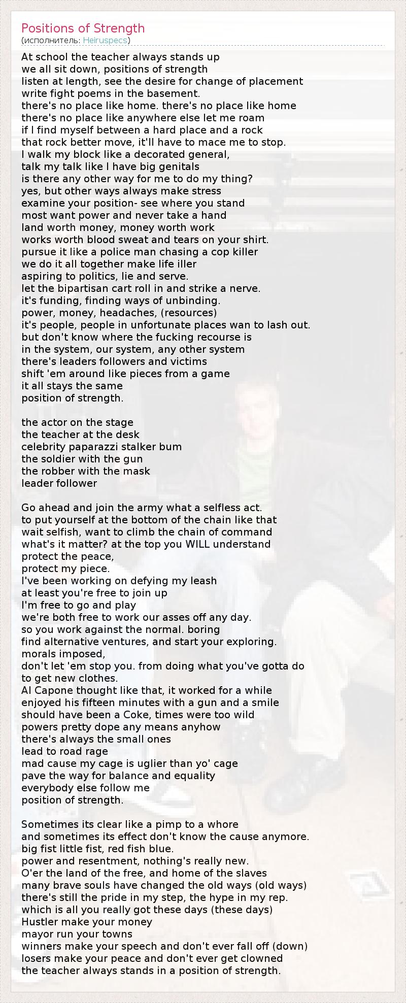 А как ты думаешь, о чем песня "Positions of Strength" ?
