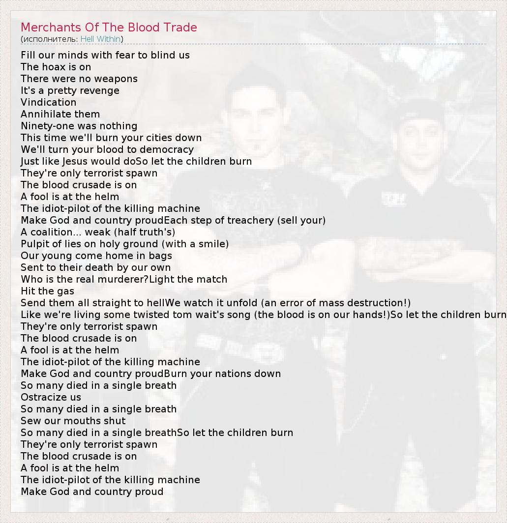 А как ты думаешь, о чем песня "Merchants Of The Blood Trade" ?