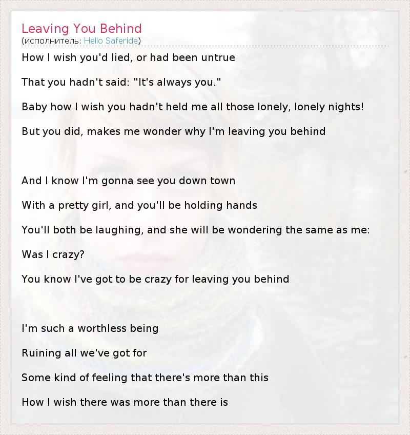 А как ты думаешь, о чем песня "Leaving You Behind" ?