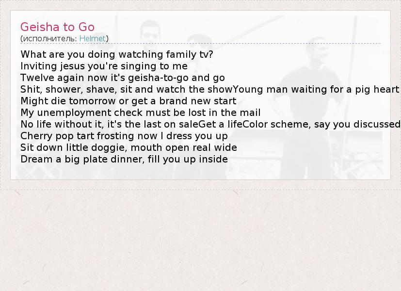 А как ты думаешь, о чем песня "Geisha to Go" ?
