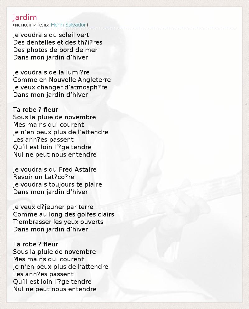 Это интересно:"Французский джазовый гитарист (а вообще-то, мультиинструменталист), вокалист и композитор Анри Сальвадор заразился джазом в 11-летнем возрасте, услышав записи Армстронга и Эллингтона. Первую гитару и первый кабацкий заработок имел в 16. Еще через пару лет Анри получил работу в парижском "Jimmy's Bar", где встретился с Джанго Рейнхардтом, на которого произвели большое впечатление... продолжение