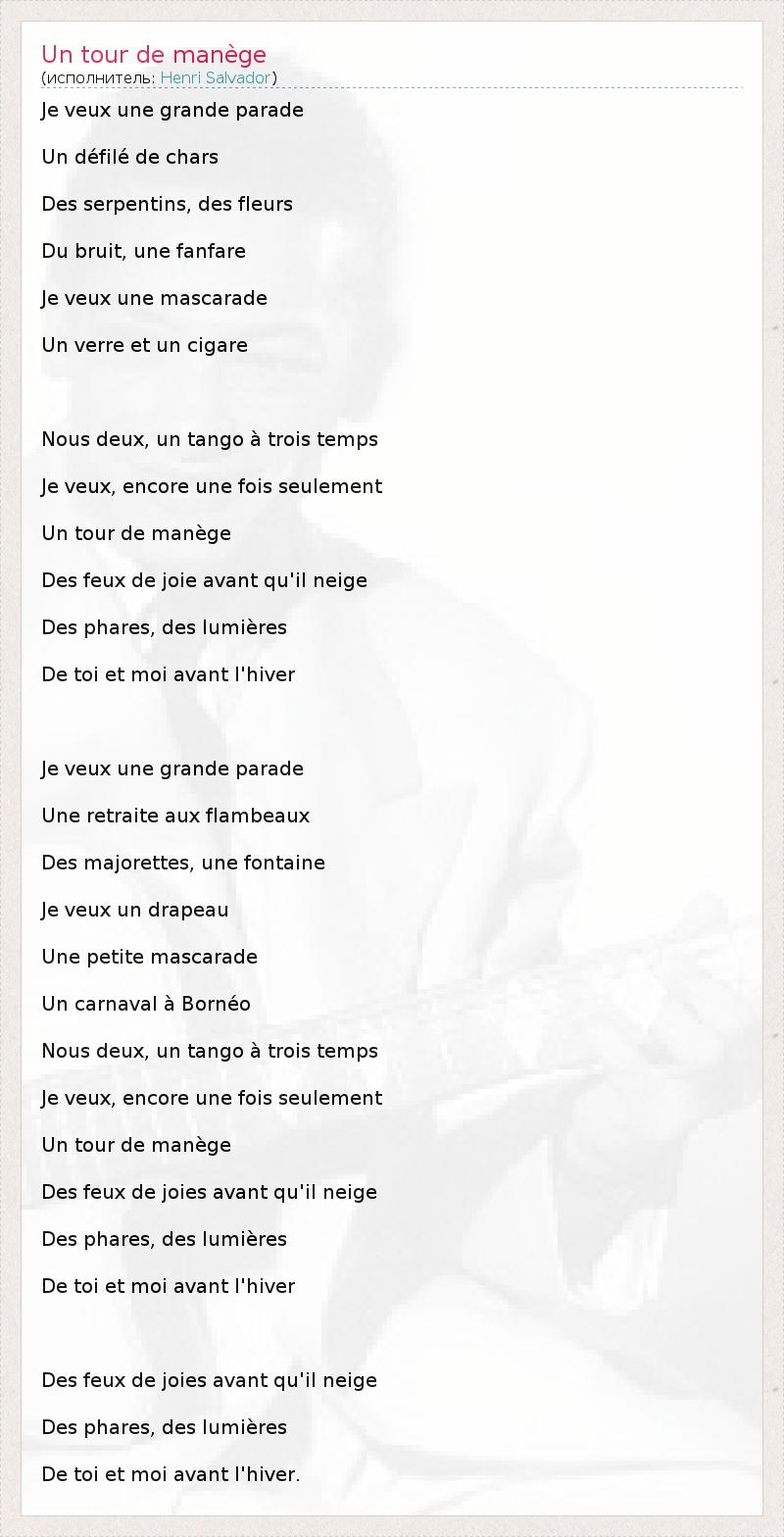 А как ты думаешь, о чем песня "Un tour de manège" ?