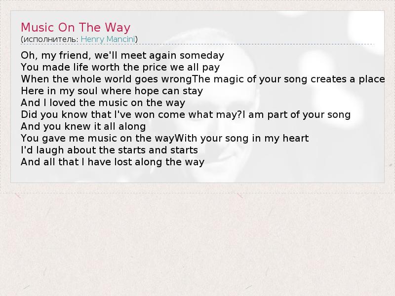 А как ты думаешь, о чем песня "Music On The Way" ?