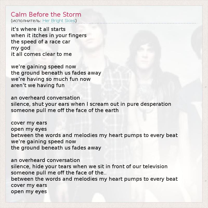 А как ты думаешь, о чем песня "Calm Before the Storm" ?