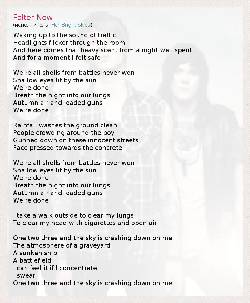 А как ты думаешь, о чем песня "Falter Now" ?