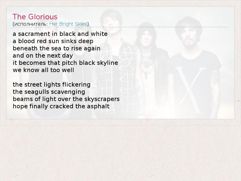 Это интересно:Her Bright Skies — это шведская пост-хардкор группа образованная в 2005 году. Первый диск был выпущен в 2007 году и назывался "Beside Quiet Waters". В этом же году они провели лето выступая на популярных Шведских фестивалях, таких как Moshpit Open, Rookie и Augustibuller, за которым последовал сентябрьский тур по Норвегии, где их впервые встретила нешведская сцена. Уже через год, в 2008, вышел их дебютный полноформатный... продолжение