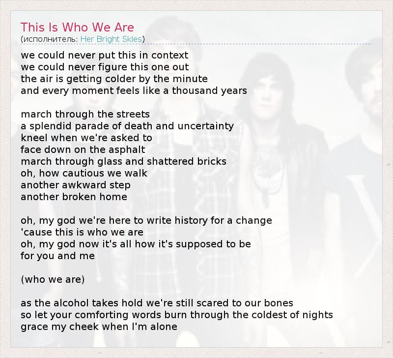 А как ты думаешь, о чем песня "This Is Who We Are" ?