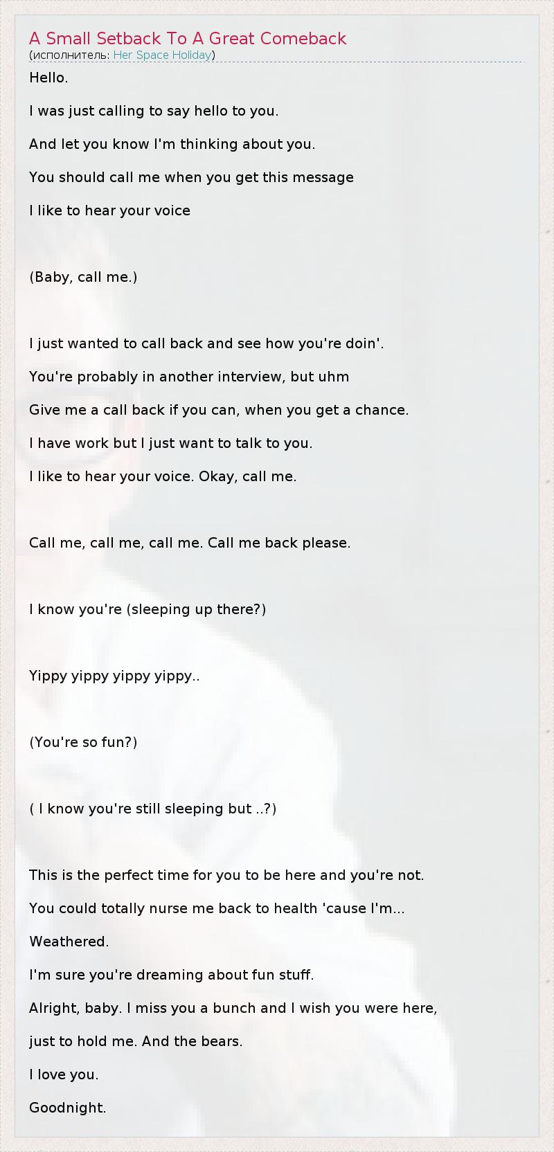 А как ты думаешь, о чем песня "A Small Setback To A Great Comeback" ?